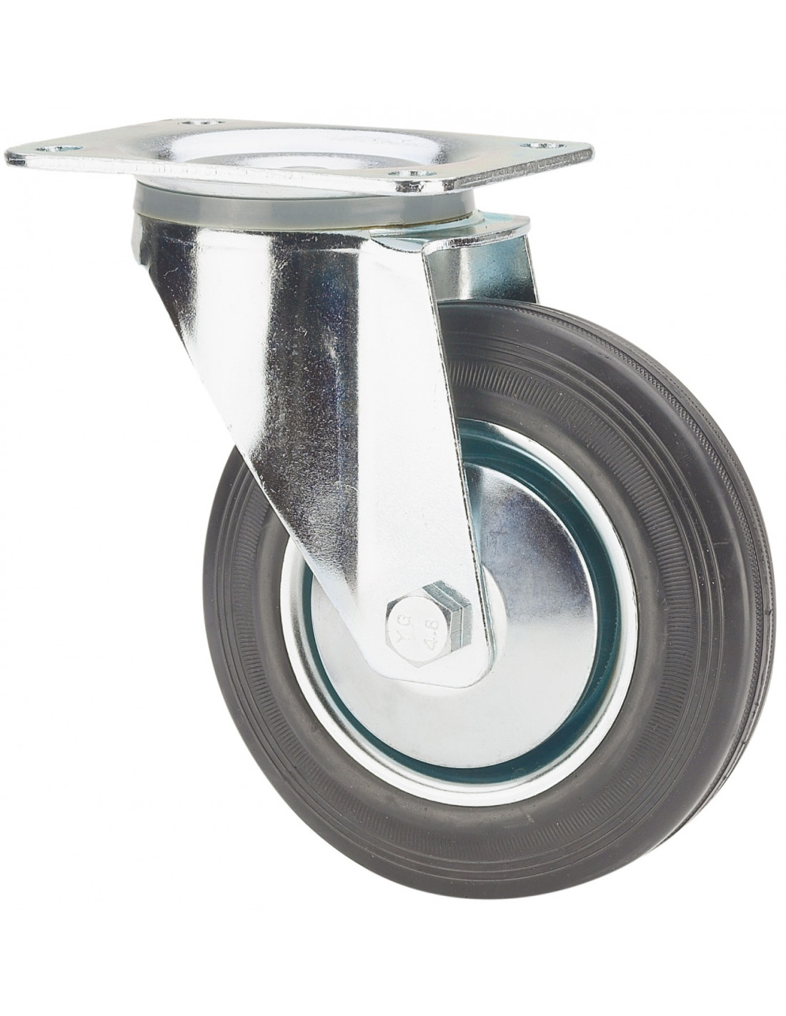 Ruedas de núcleo de metálico con banda de goma negra. Especialmente indicada para soportar cargas hasta 205 Kg.
