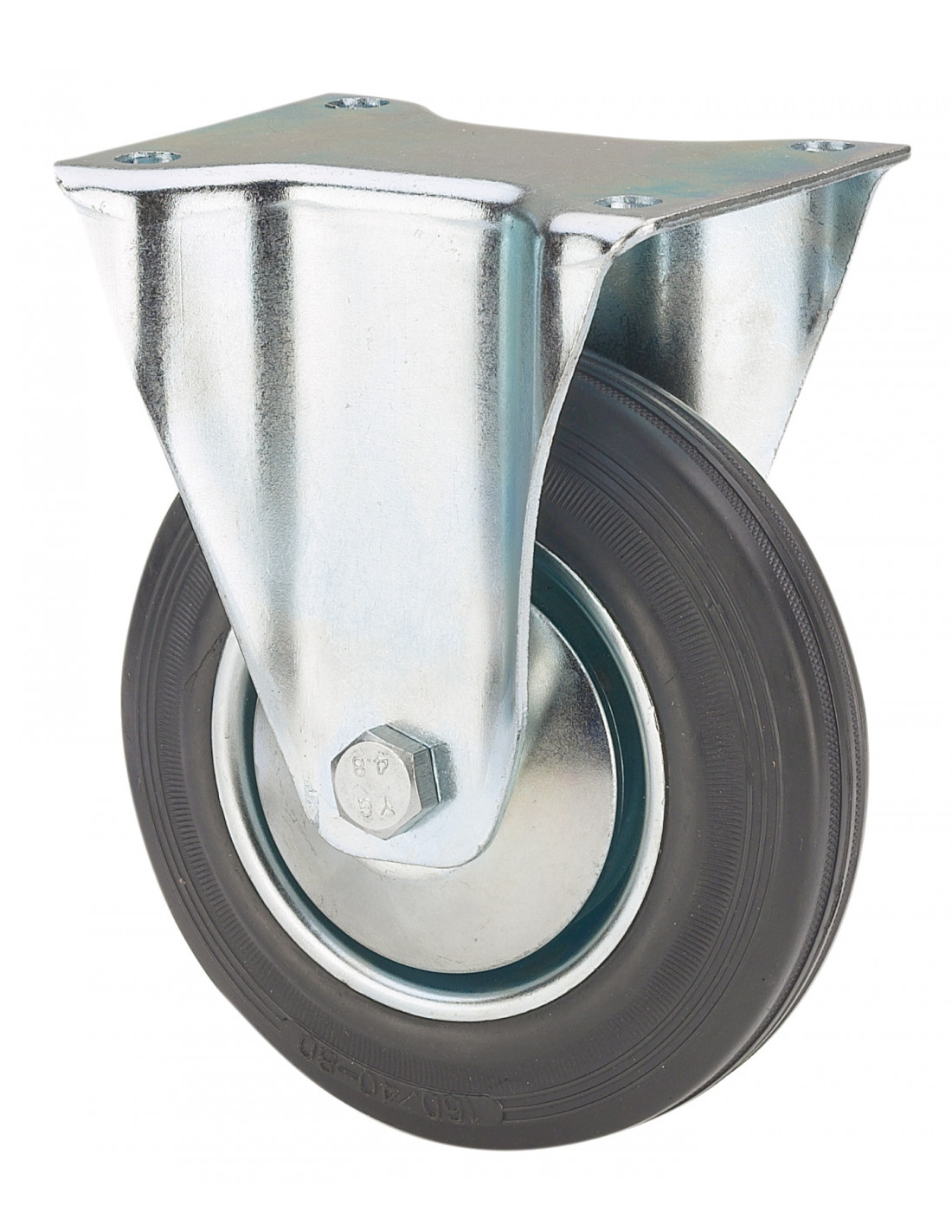 Ruedas de núcleo de metálico con banda de goma negra. Especialmente indicada para soportar cargas hasta 205 Kg.