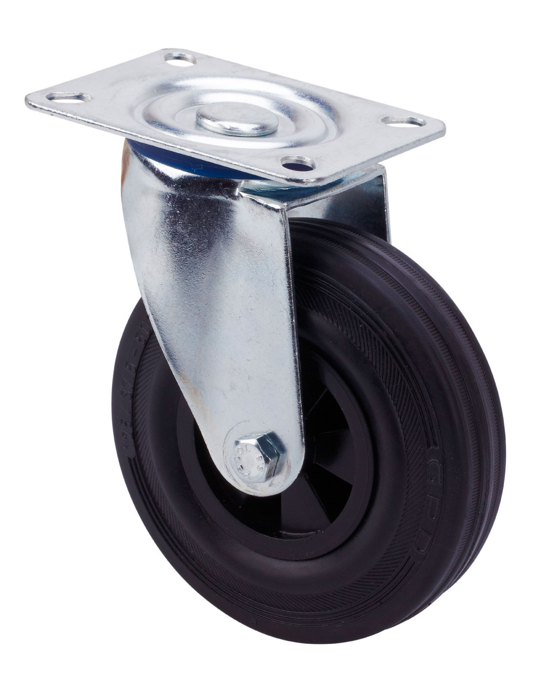 Ruedas de goma negra natural. Especialmente indicada para soportar cargas hasta 200 Kg.
