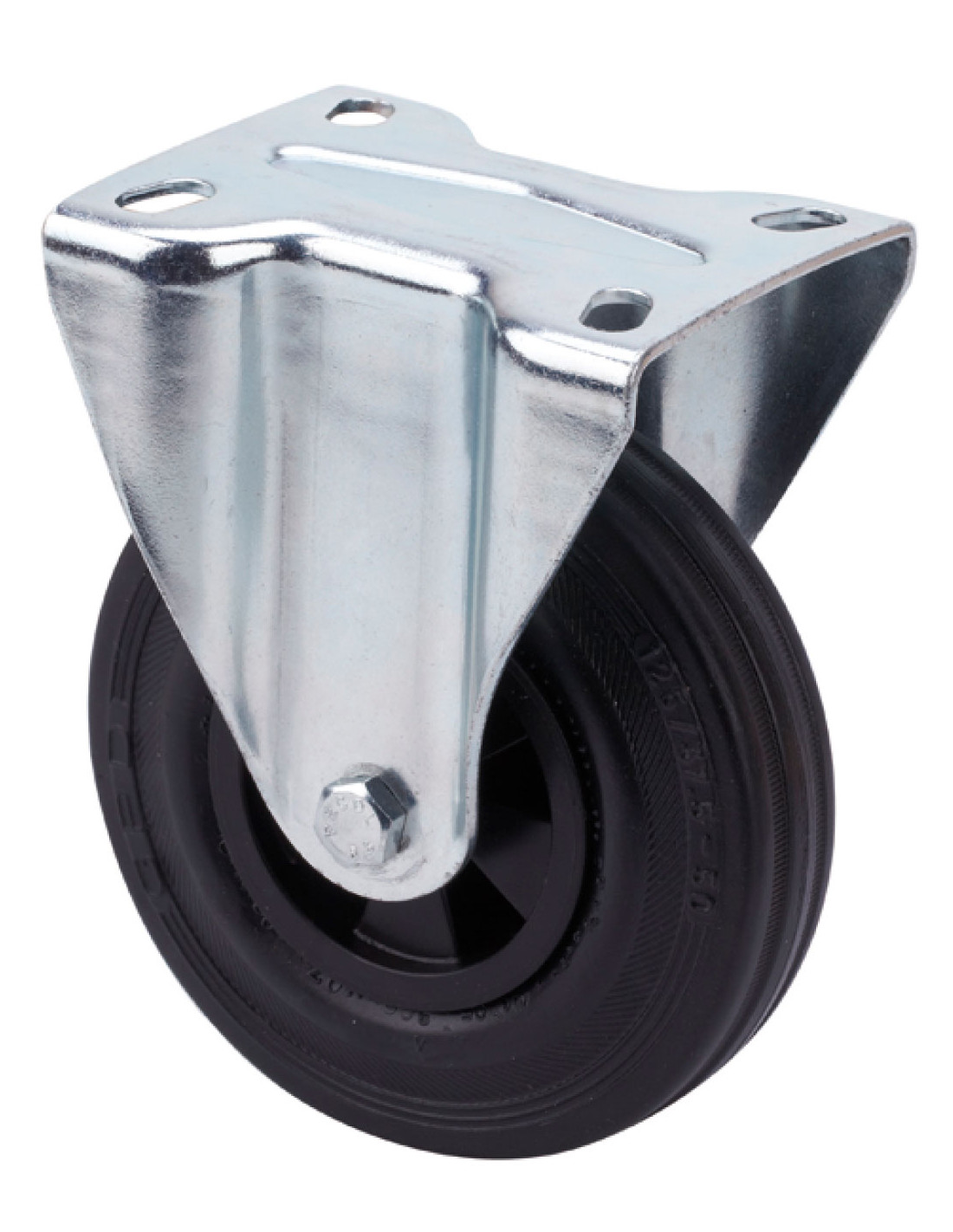 Ruedas de goma negra natural. Especialmente indicada para soportar cargas hasta 200 Kg.