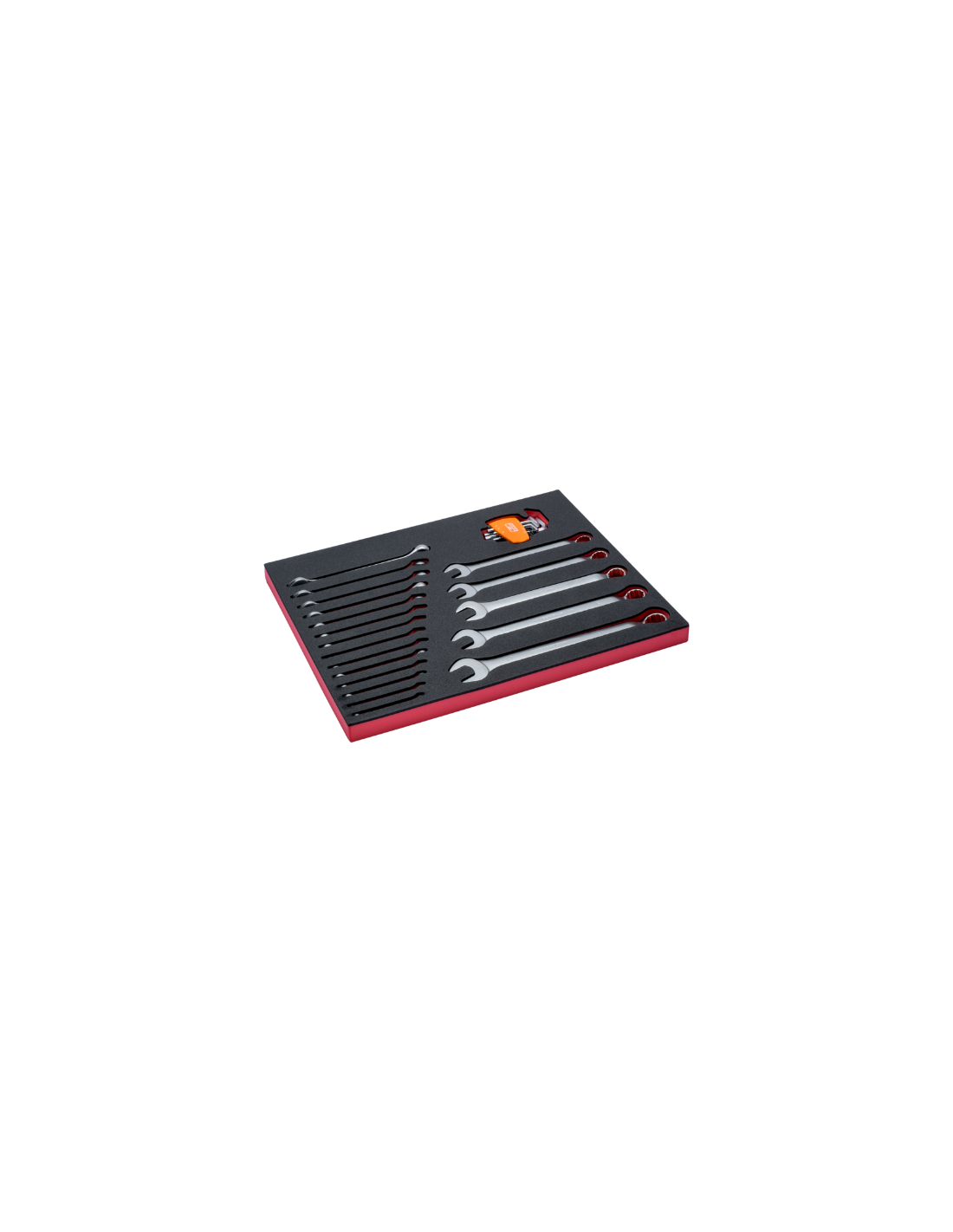 Juego de llaves combinadas acodadas en bandeja de foam 3/3 Fit&Go, 28 piezas