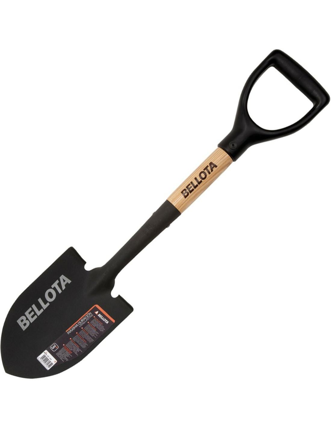Pala multiuso, con cabeza pequeña y manejable, con mango de madera y con anilla extra-ancha de polipropileno.