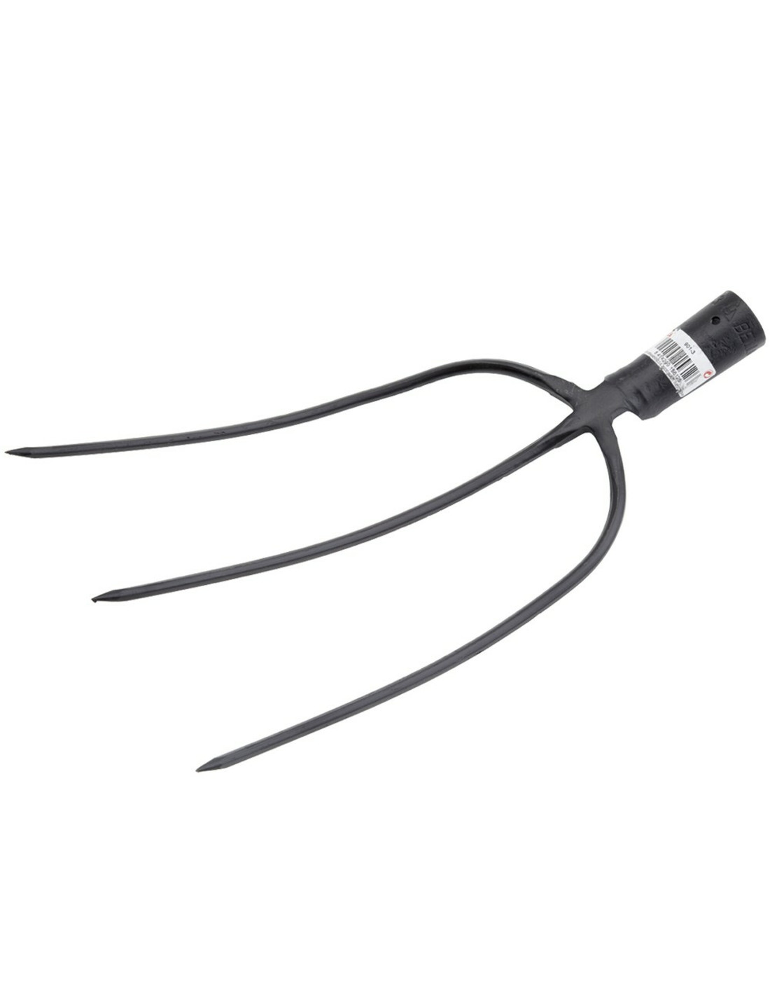 Horca de tres púas fabricada en acero especial y forjada en una sola pieza para recoger heno, estiércol y manipular fardos.