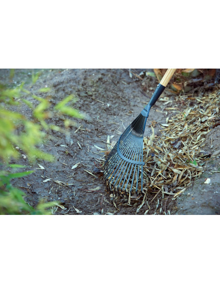 Escoba de jardín, púa plana con mango madera FSC