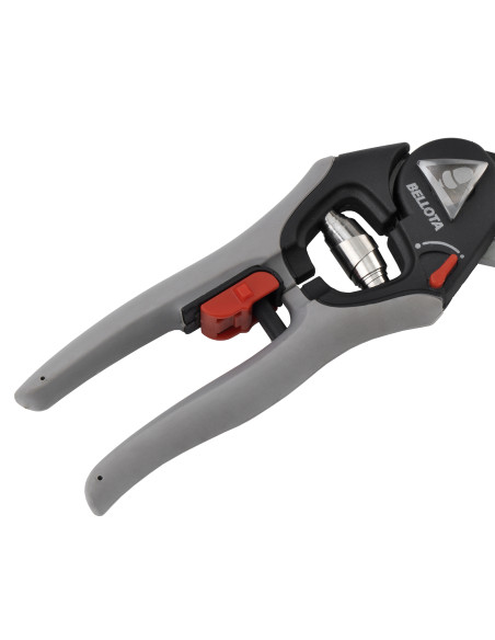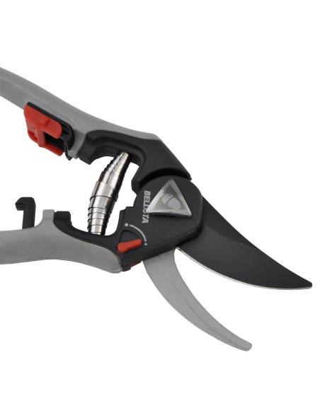 Tijera de una mano corte universal bypass, hojas recubiertas antiadherentes para un corte limpio, diámetro de corte 25mm. Mangos Soft touch con sistema de apertura regulable. Seguro accionable por los dos lados.