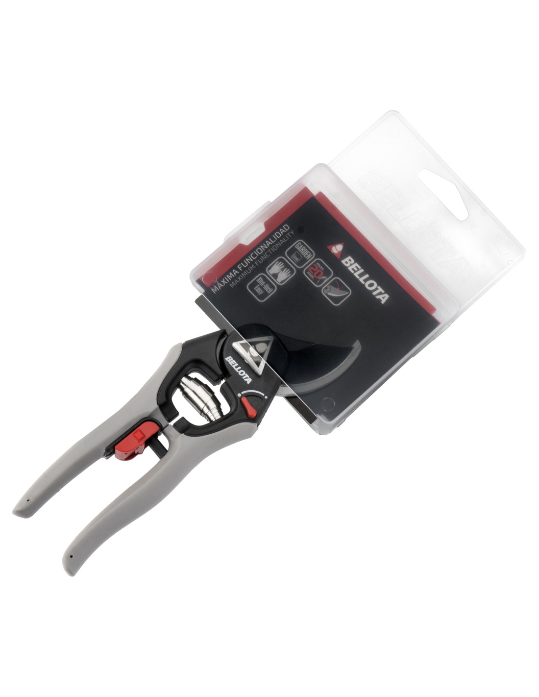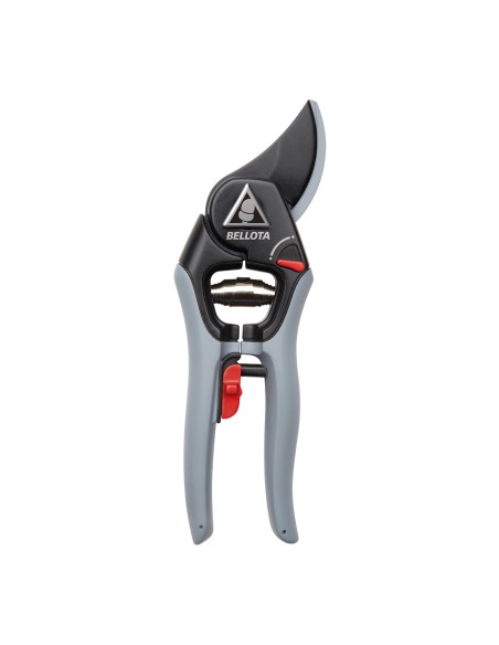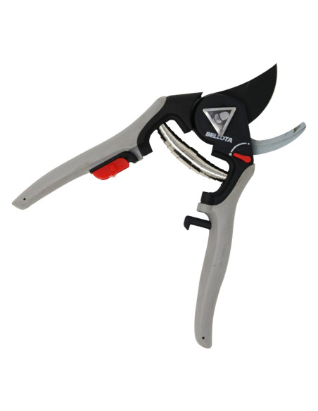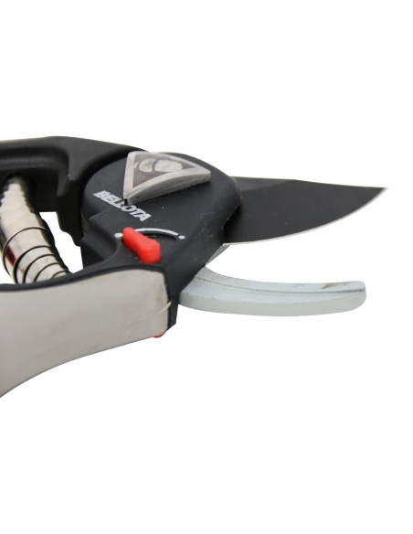 Tijera de una mano bypass extra corte, hojas recubiertas antiadherentes para un corte limpio, diámetro de corte 20 mm. Mangos Soft touch con sistema de apertura regulable. Seguro accionable por los dos lados.