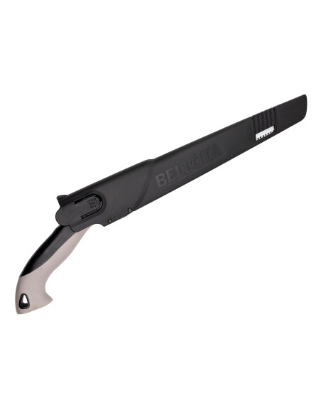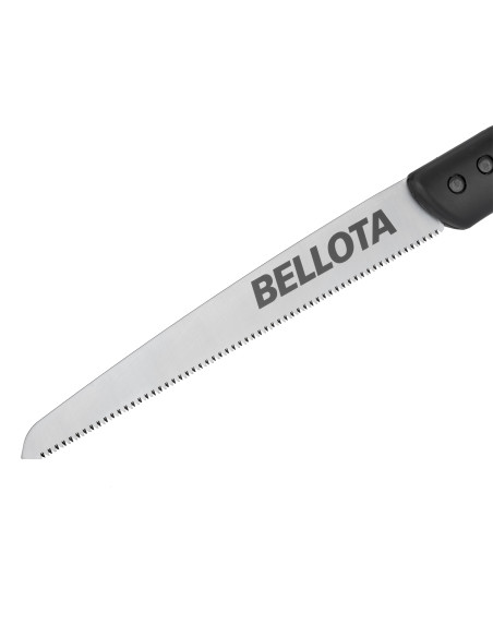 Serrucho de hoja recta de acero especial laminado con dentado japonés fino con temple extraduro en los dientes. Su mango es de madera de haya certificada, con protector para la mano. Este serrucho incluye una funda de poliamida reforzada con fibra de vidrio.