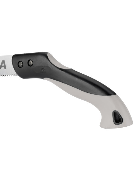 Serrucho de poda con hoja recta y dentado japonés fino templado por impulso. Con mango de madera de haya certificada PEFC