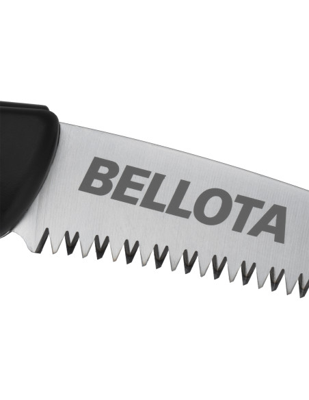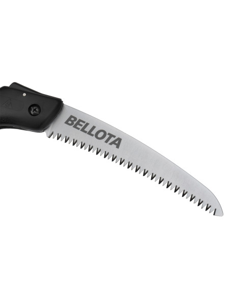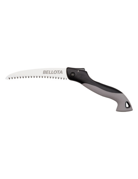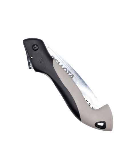 Serrucho plegable de hoja curva de acero especial laminado con dentado japonés con temple extraduro en los dientes. Su mango bimaterial cuenta con un acabado Soft Touch. E