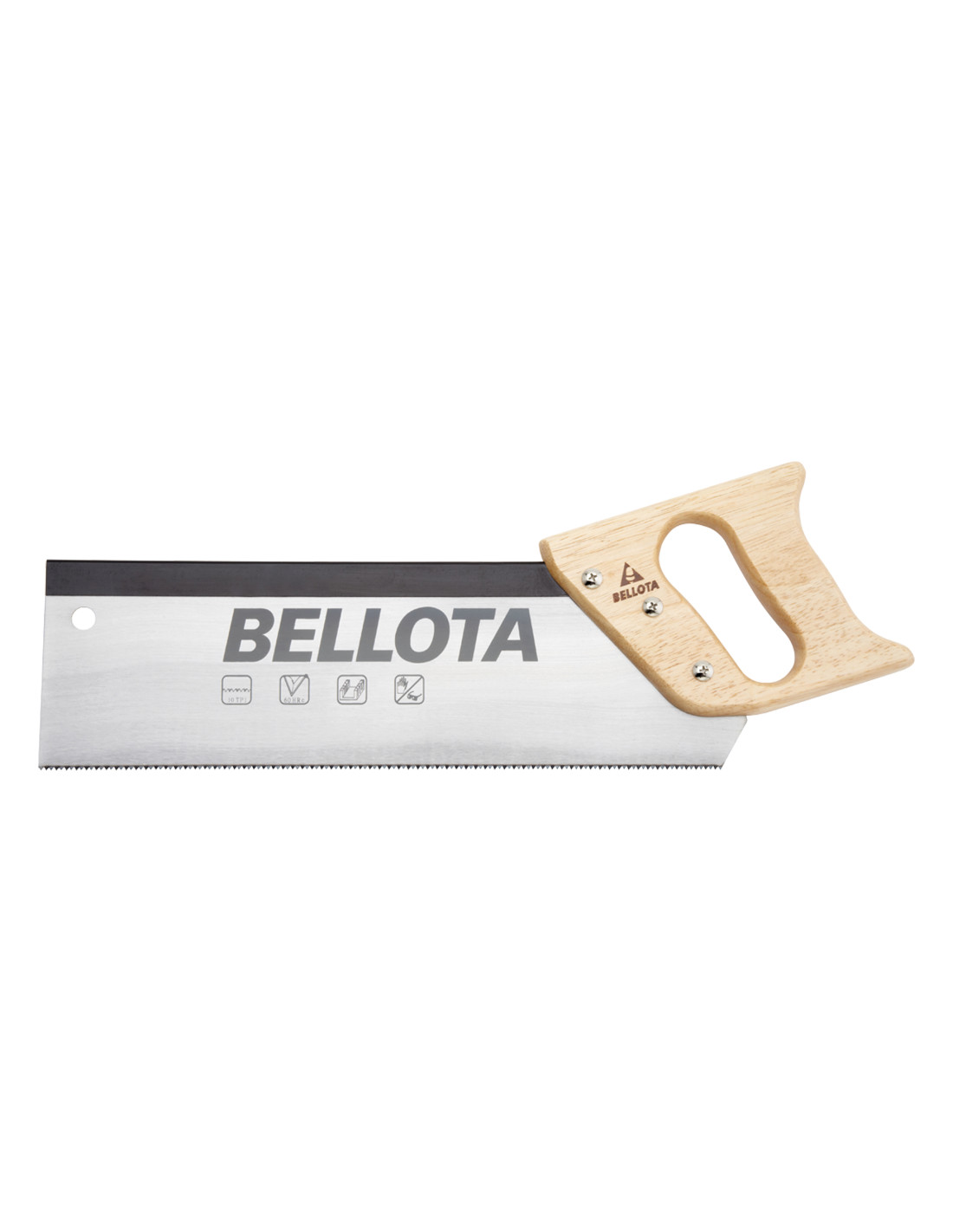 Serrucho de costilla profesional con dentado fino de doble filo (10 TPI), con doble tratamiento térmico para un mayor rendimiento y máxima duración. Mango de madera de haya con certificado PEFC.