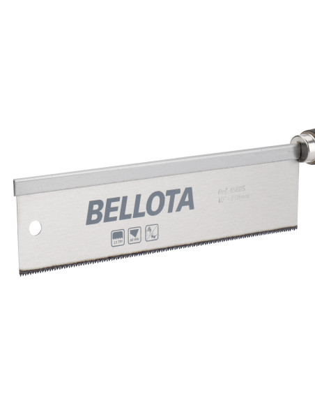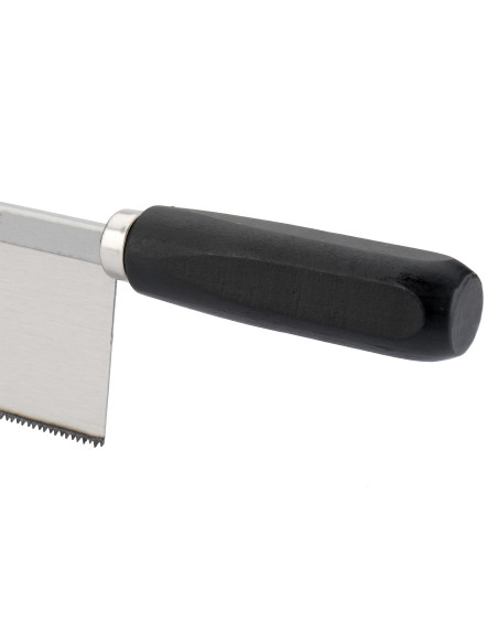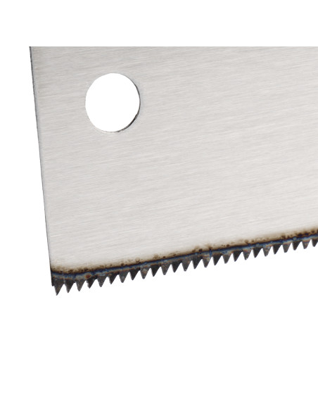 Serrucho de ebanista profesional con dentado muy fino de doble filo (13 TPI), con doble tratamiento térmico para un mayor rendimiento y máxima duración. Mango recto de madera.