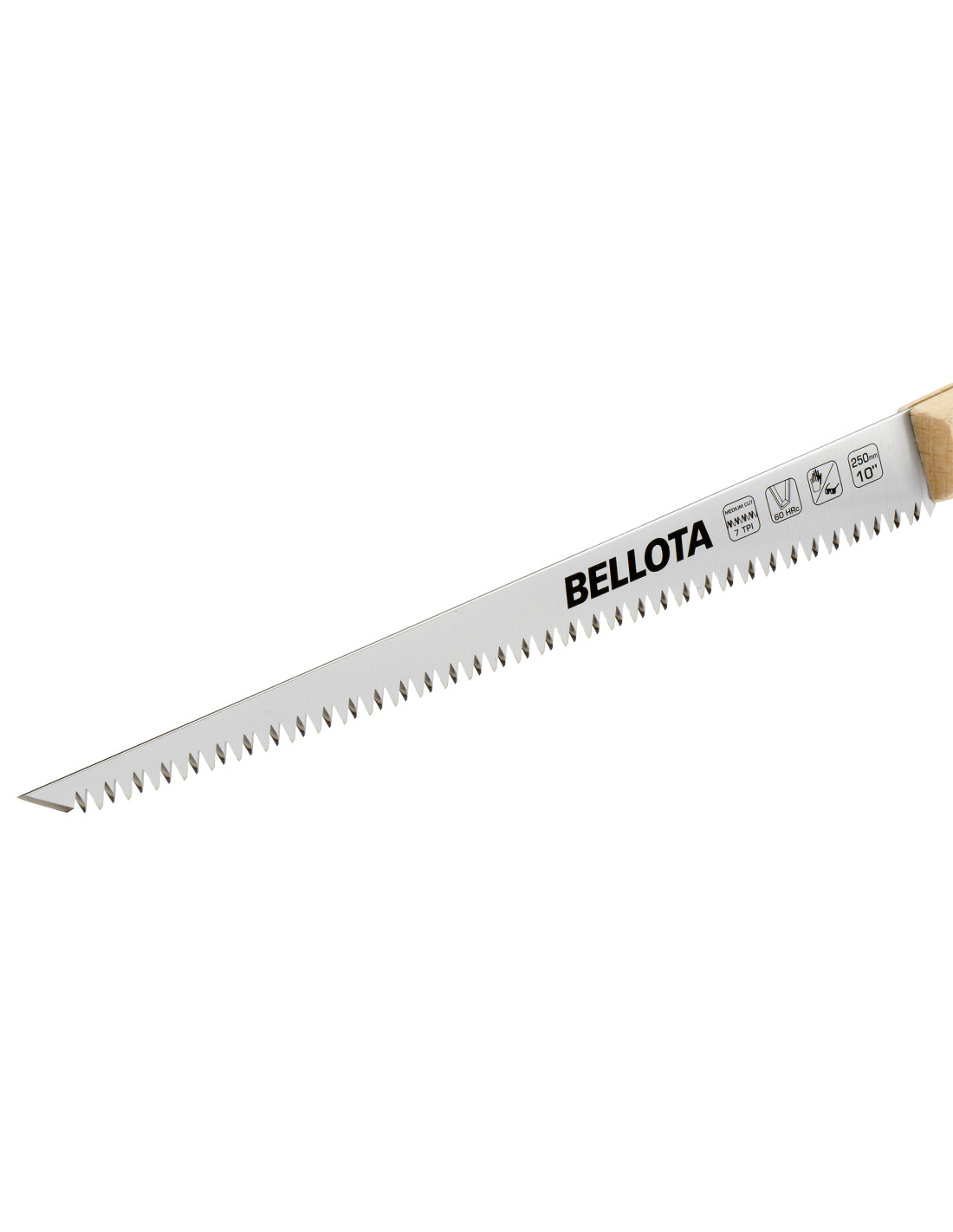Serrucho de punta profesional con dentado japonés de triple filo (7 TPI), con doble tratamiento térmico, para un mayor rendimiento y máxima duración. Mango de madera de haya con certificado PEFC.