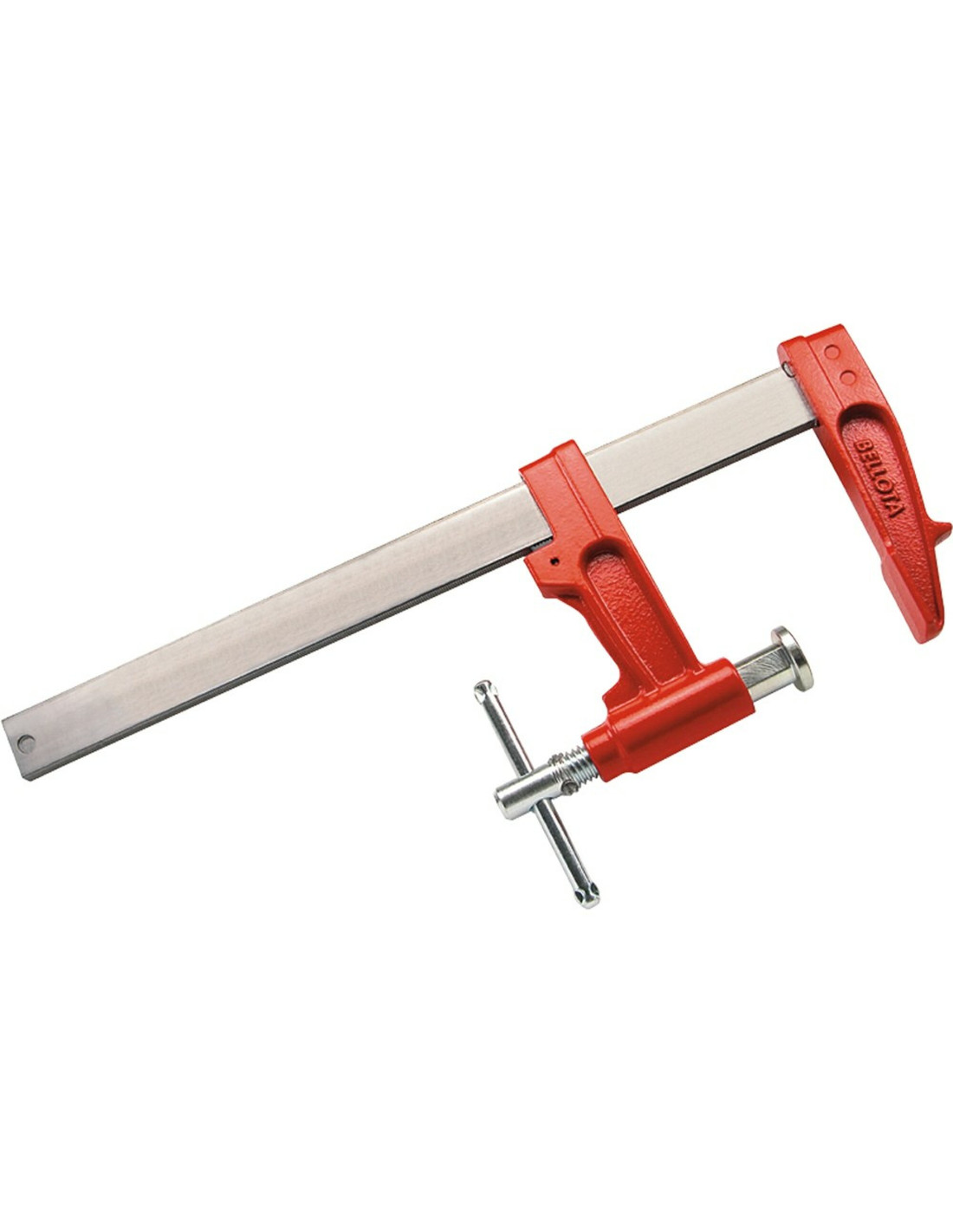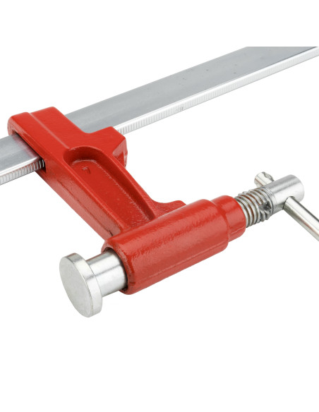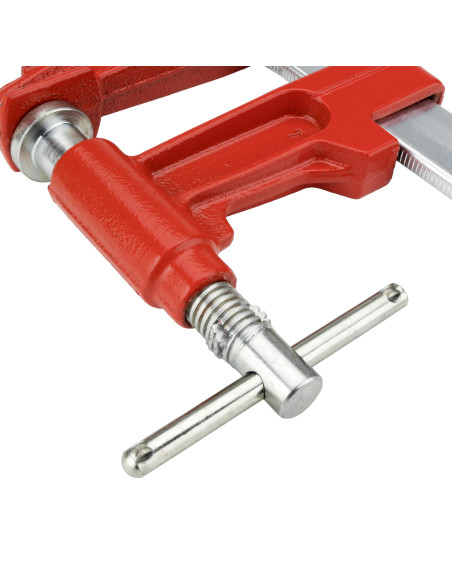 Sargento profesional extra con émbolo y alcance de 90 mm. Llanta de acero calibrada (sección de 8x30 mm). Sistema de apriete con émbolo, 30% más de fuerza. Mango en cruz. Para trabajos exigentes.