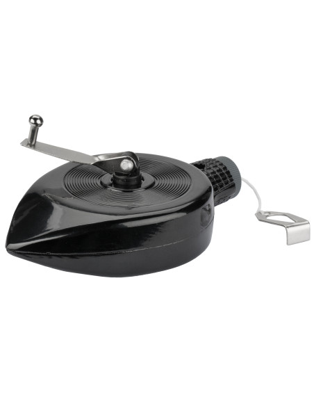 Tiralíneas con carcasa de aluminio ergonómica, compacta y resistente, con cuerda de 30 metros de alta retención del polvo tazador.