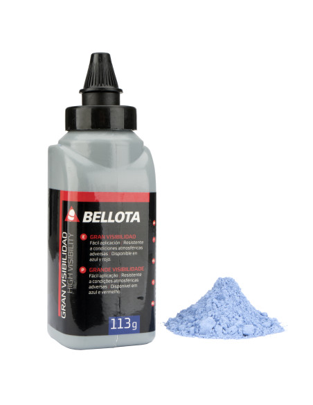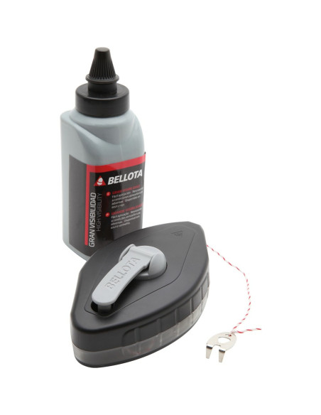 Kit tiralineas con polvo trazador. Carcasa de polipropileno resistente, con cuerda de 30 metros. Dispositivo de llenado fácil y rápido. Incluye 113 gr de polvo trazador de color azul.