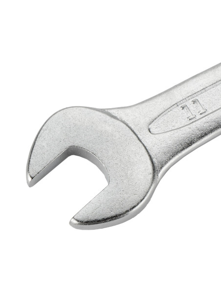 Llave fija forjada en acero cromo vanadio con acabado cromado mate. Par de apriete 50% superior a la norma. Cumplen DIN 3110 y DIN 475. Para trabajos de apriete y ajuste de tornillos.