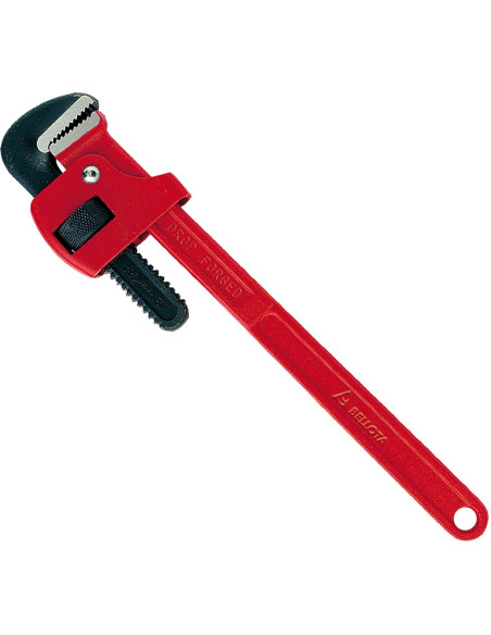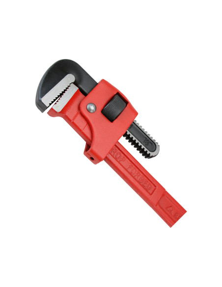 Llave Stillson profesional fabricada en acero forjado, con mango en doble T y mordazas con dientes tratados térmicamente, dureza mínima de 55HRc.