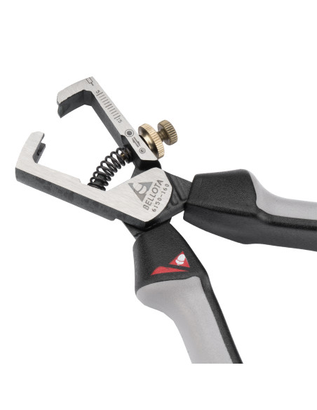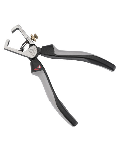 Alicate pelacables profesional con cabeza y cuerpo forjados de acero,alta durabilidad. Tratamiento diferenciado en cabeza. Boca afilada y regulable para poder pelar los cables de forma fácil y limpia.
