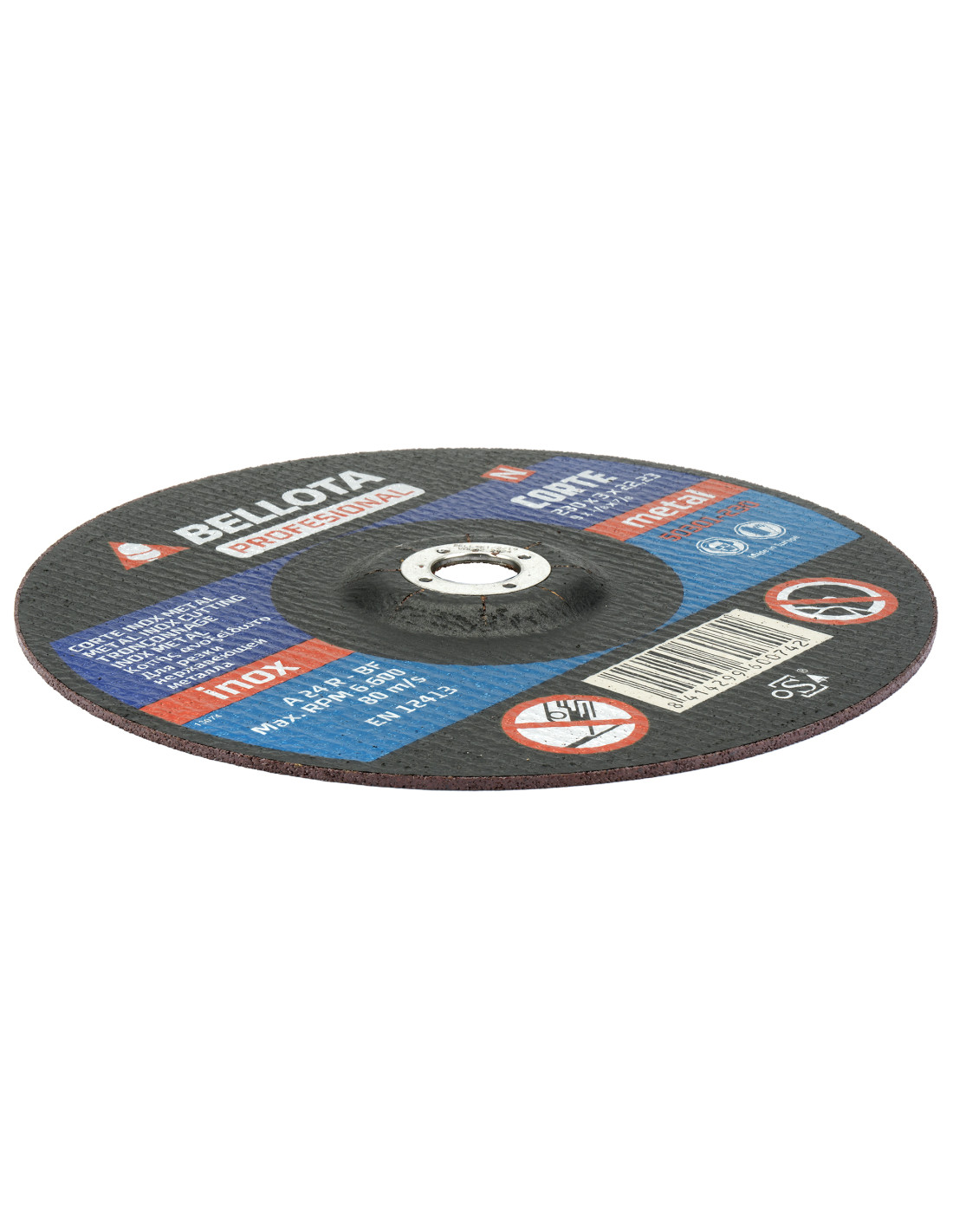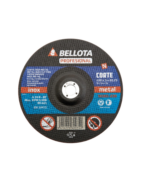 Disco abrasivo profesional para inox-metal, espesor de 3 mm para un corte firme y seguro. Cumplen norma UNE EN 12413 de seguridad. Uso en amoladoras angulares portátiles.