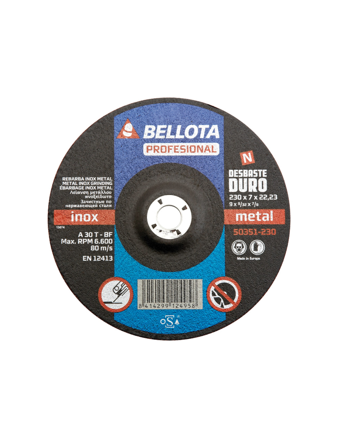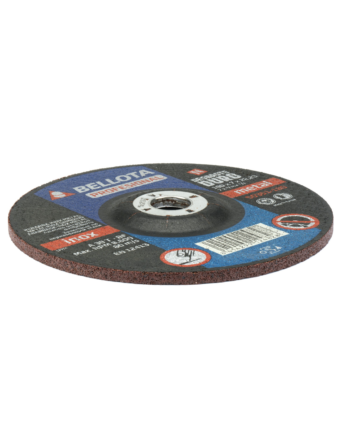 Disco abrasivo profesional para inox-metal, espesor de 7 mm para una mayor vida útil. Cumplen norma UNE EN 12413 de seguridad. Uso en amoladoras angulares portátiles.