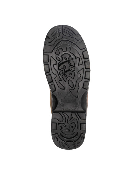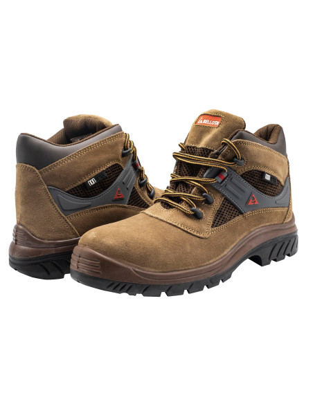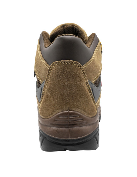 Bota de seguridad S1P en serraje marrón con elementos de protección no metálicos.