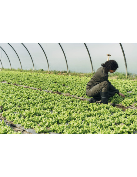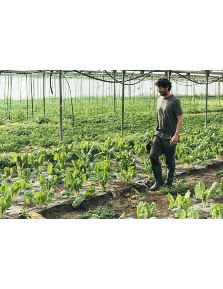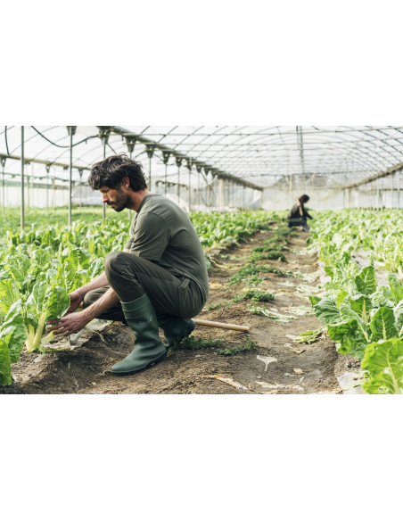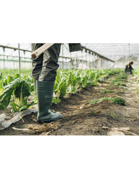 Bota de agua con protección S5 en PVC verde, con elementos de protección metálicos.