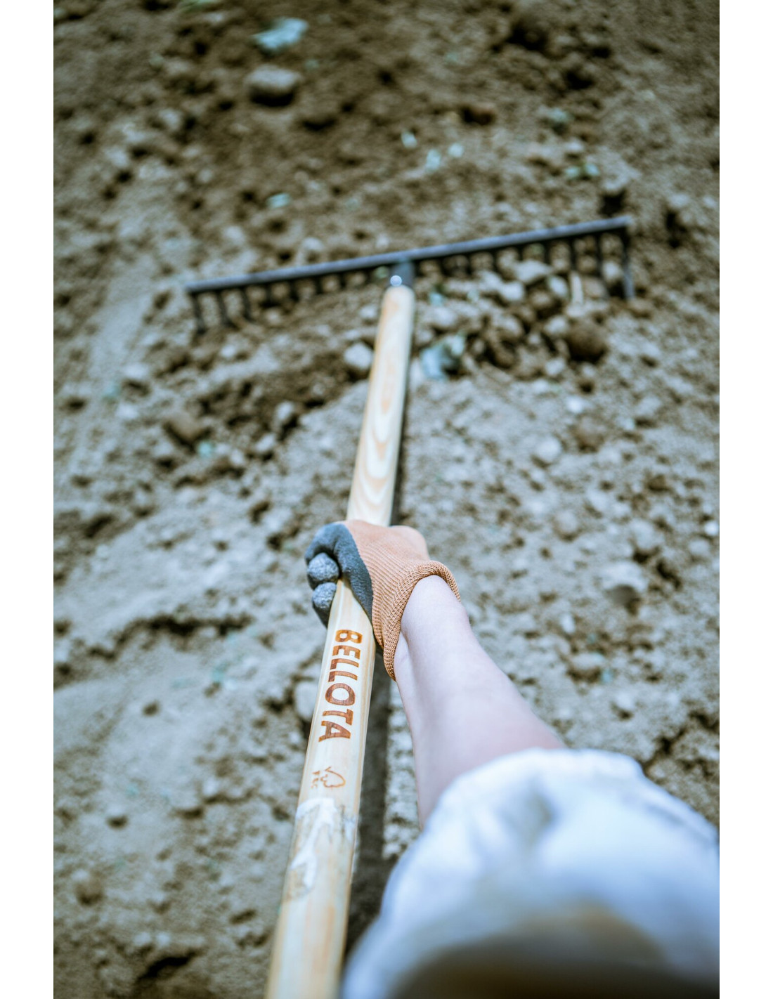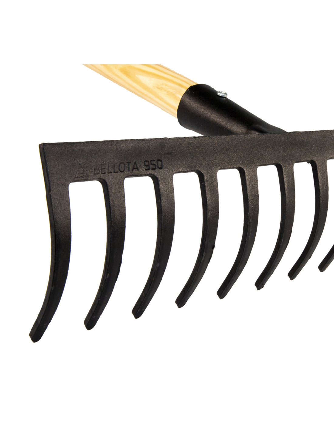 Rastrillo de alta intensidad, tratado térmicamente , púas curvas, con mango certificado FSC.