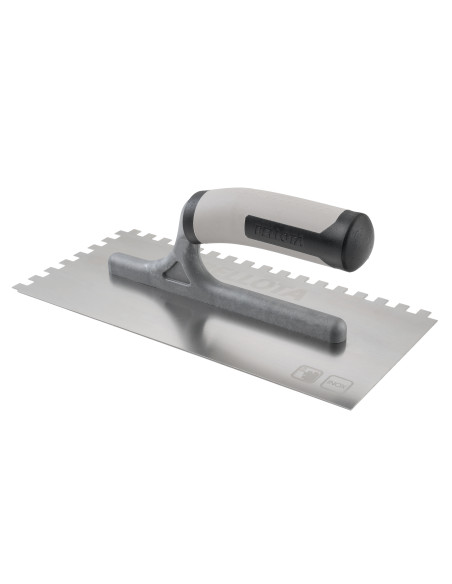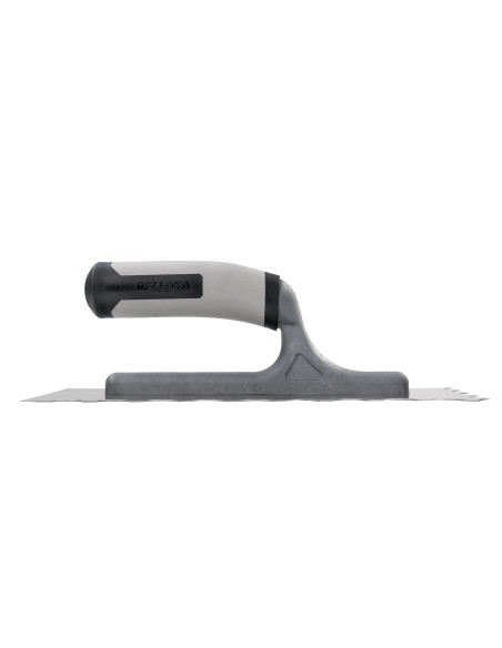 Peine de acero inoxidable diente radio con mango abierto bimaterial para trabajos de alicatado y solado / 5874RBIMINOX