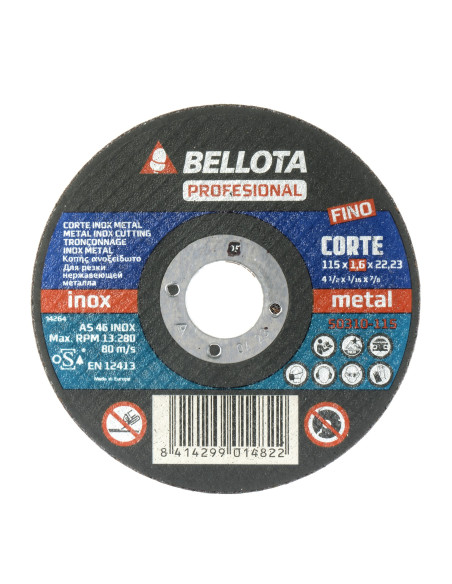 Disco abrasivo profesional fino para inox-metal, espesor hasta 1 mm para un corte fino y sin rebabas. Cumplen norma UNE EN 12413 de seguridad. Uso en amoladoras angulares portátiles.