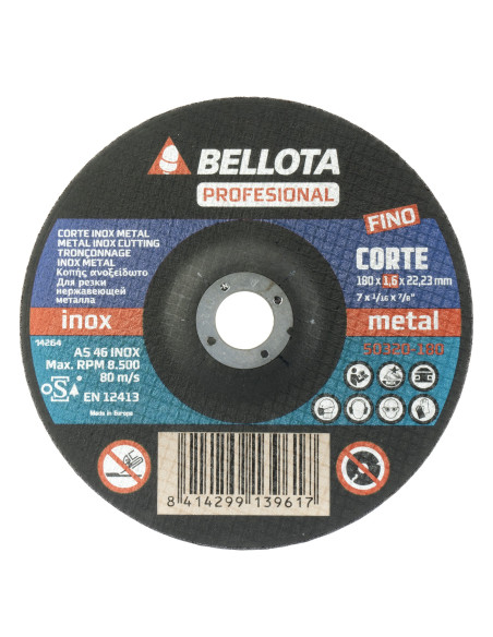 Disco abrasivo profesional fino para inox-metal, espesor hasta 1 mm para un corte fino y sin rebabas. Cumplen norma UNE EN 12413 de seguridad. Uso en amoladoras angulares portátiles.