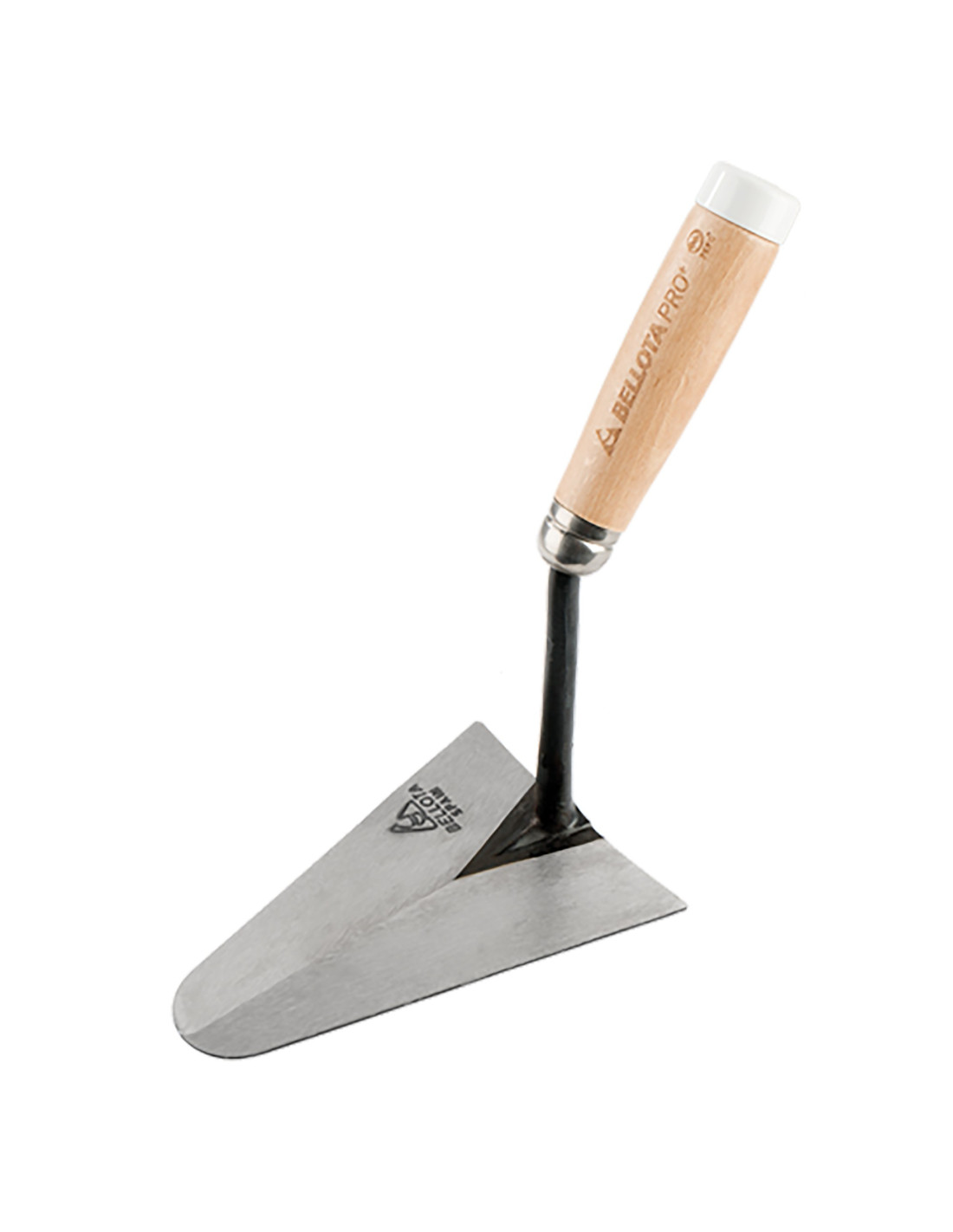 Paleta profesional catalana de acero forjado (irrompible), hoja tratada, garantía de la unión del mango de madera de haya certificado PEFC. Con taco de nylon para asentar baldosas y ladrillos.