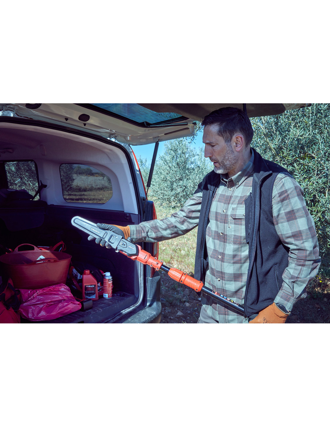 Motosierra pértiga eléctrica a batería largo extensible, capacidad de corte 210mm