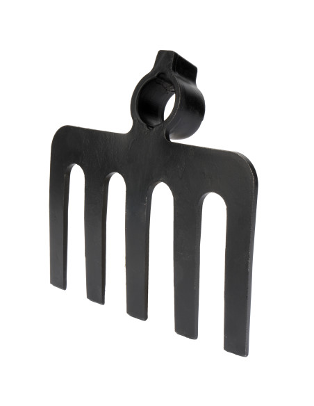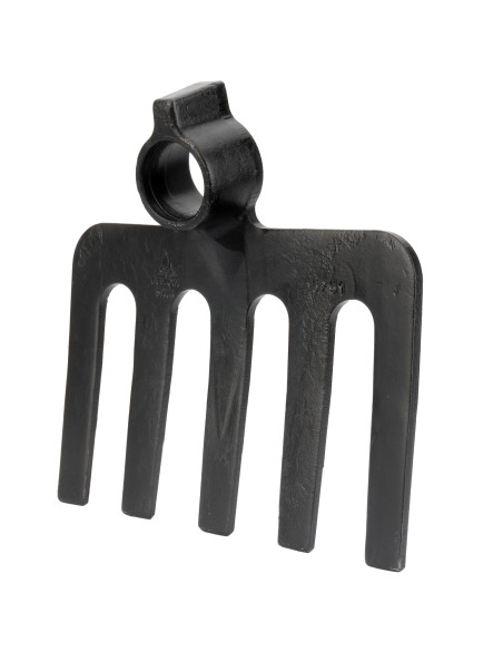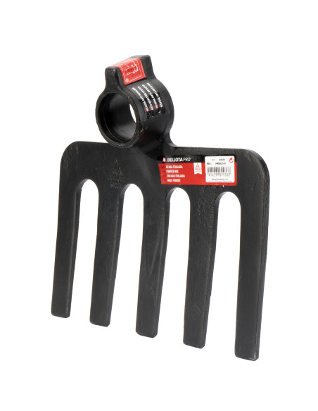 Rastrillo de 5 puntas planas profesional con sistema antigiro, de acero forjado en una sola pieza, puntas tratadas y cubo sin rebabas.