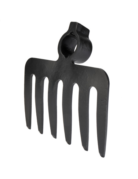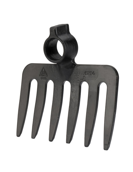 Rastrillo de 6 puntas profesional con sistema antigiro, de acero forjado en una sola pieza, puntas tratadas y cubo sin rebabas.