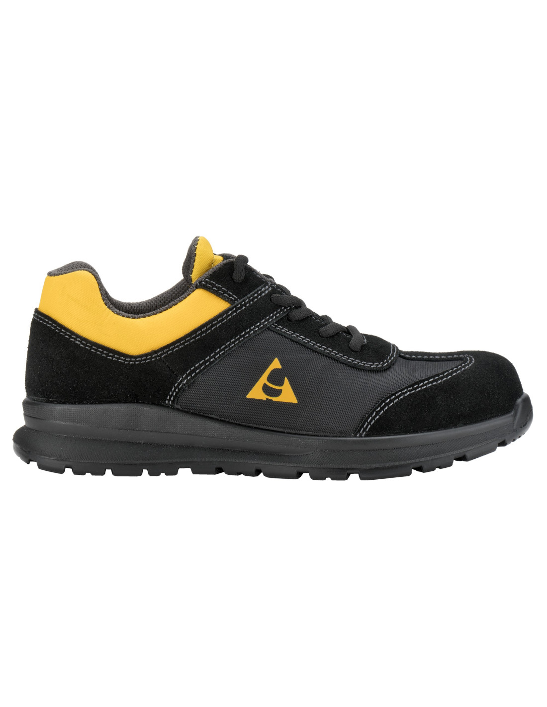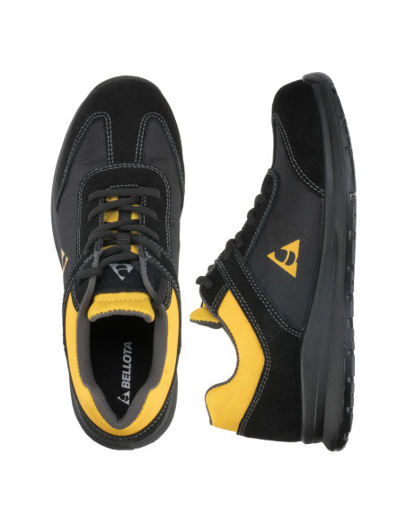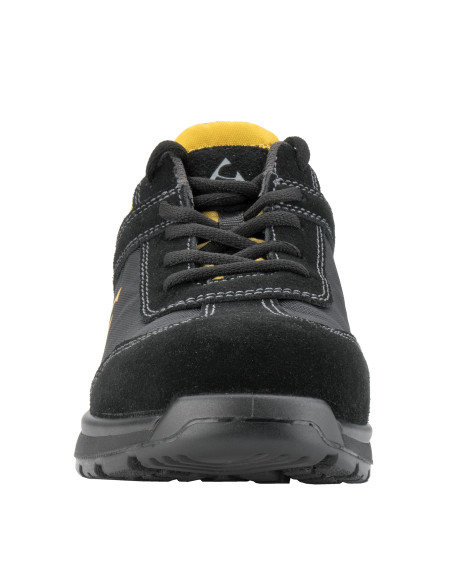 Zapato de seguridad S1P en textil negro y detalles amarillos.