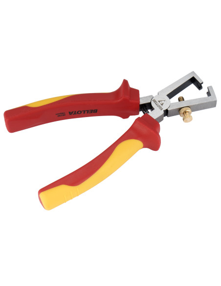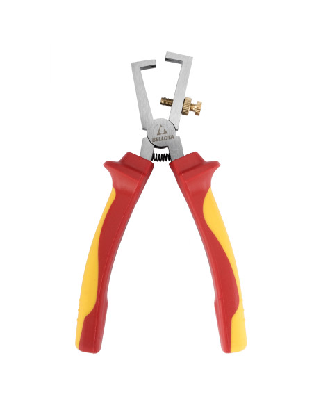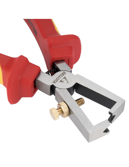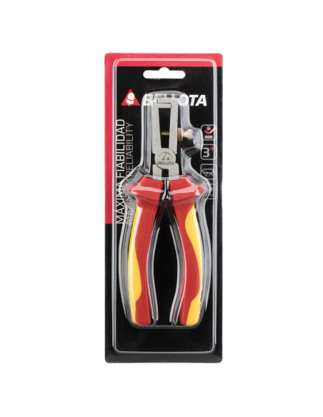 Alicate pelacables aislado hasta 1000V, con cabeza y cuerpo forjados de acero, alta durabilidad. Tratamiento diferenciado en cabeza. Boca afilada y regulable para poder pelar los cables de forma fácil