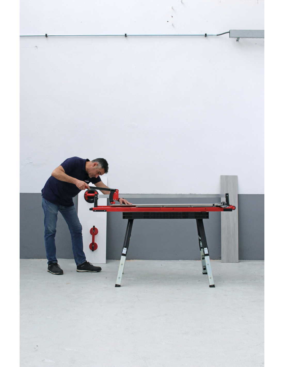 Cortadora de cerámica de gran formato Neo155, 1550 mm de corte, máximo espesor de 18 mm, 1200 Kg de fuerza separación, incluye escuadra-trolley-rulina de 22 mm.