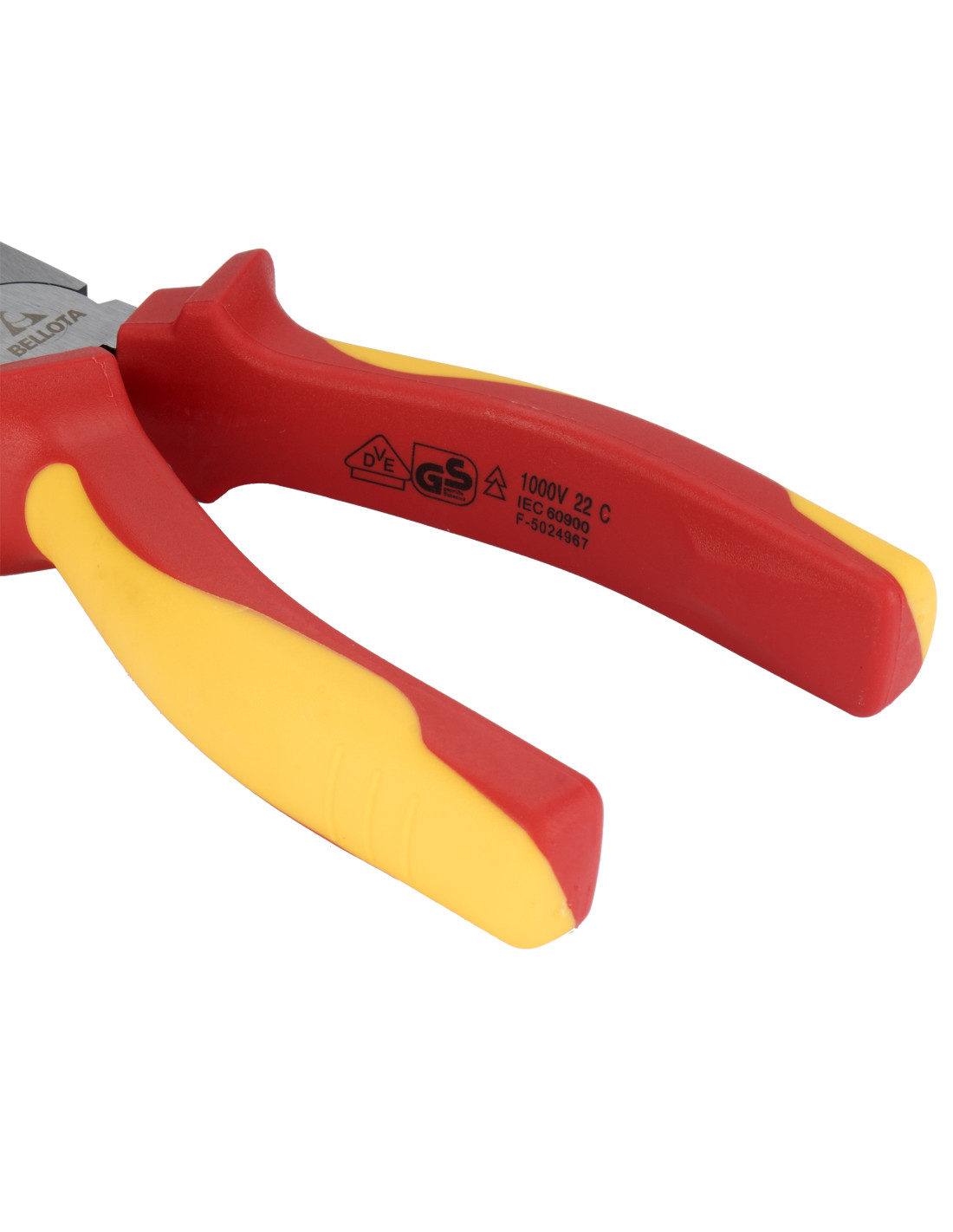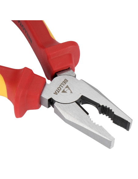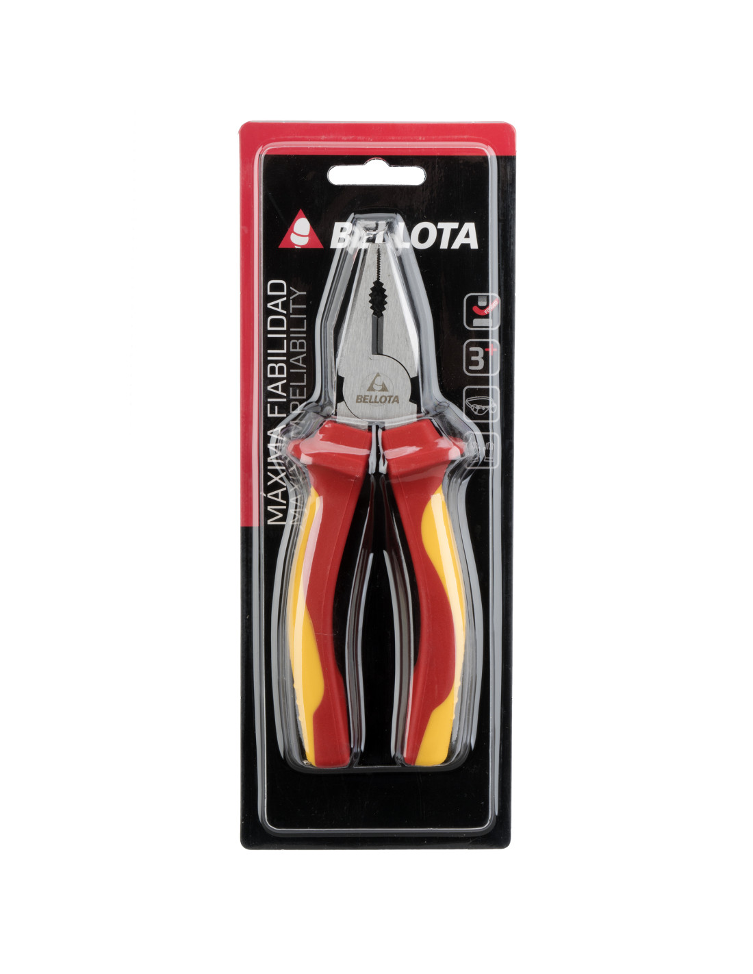 Alicate universal aislado hasta 1000V, con cabeza y cuerpo forjados de acero, alta durabilidad. Tratamiento diferenciado en cabeza y filo.