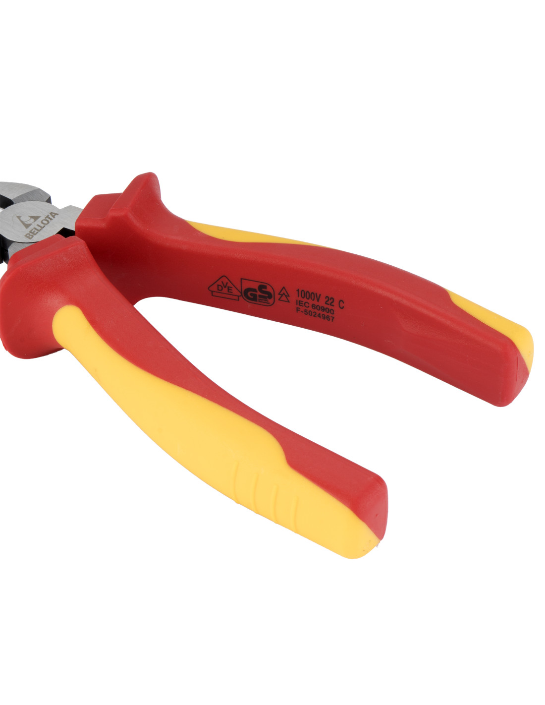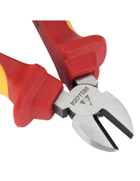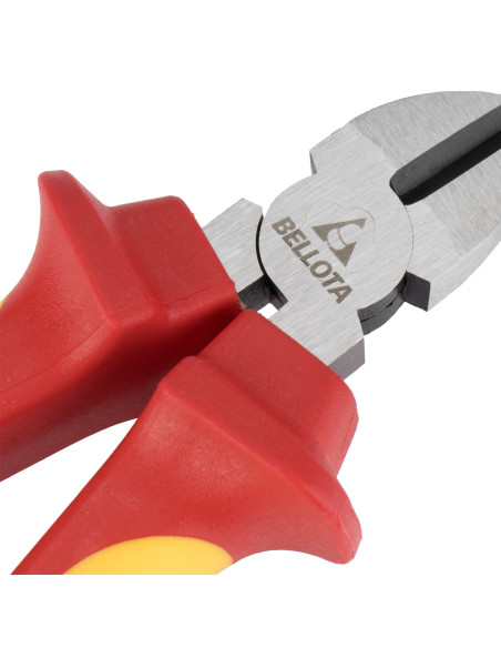 Alicate cortante diagonal aislado hasta 1000V, con cabeza y cuerpo forjados de acero, alta durabilidad. Tratamiento diferenciado en cabeza y filo.