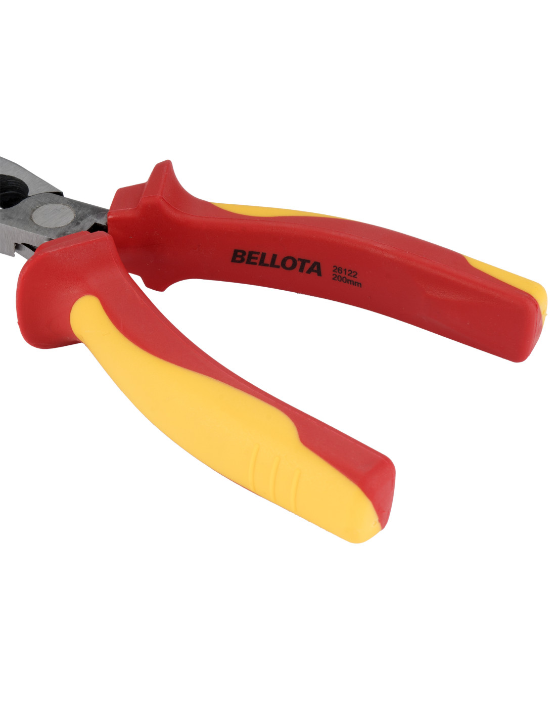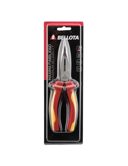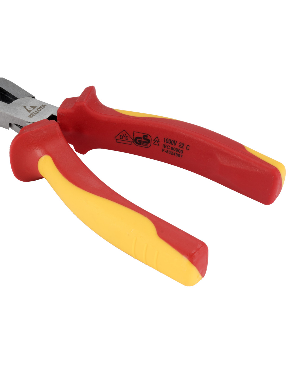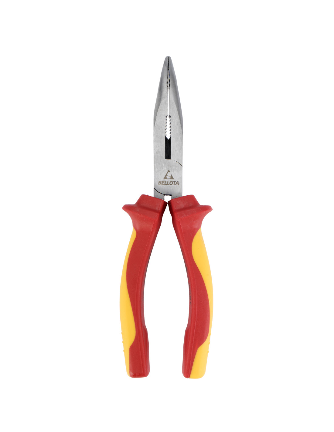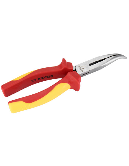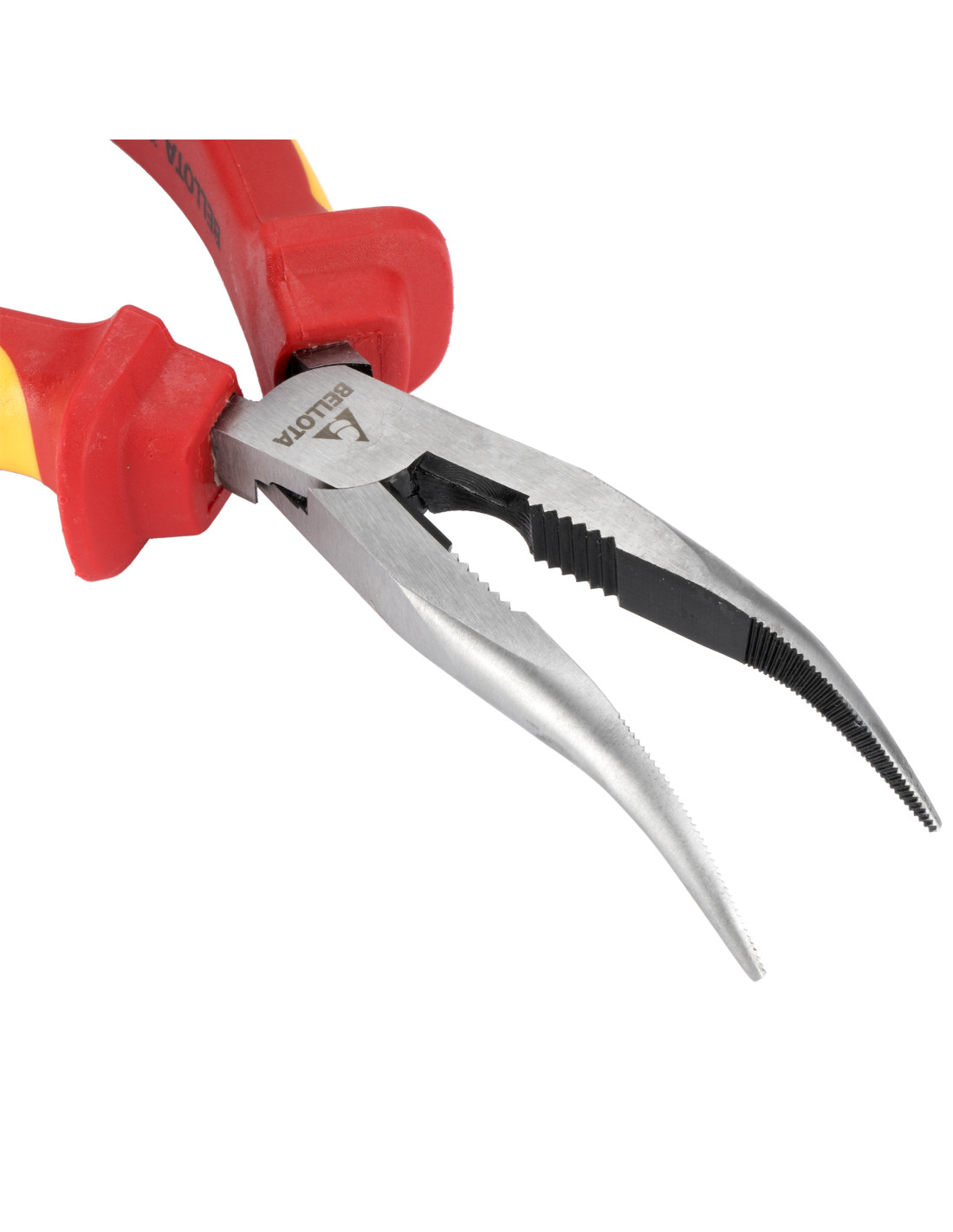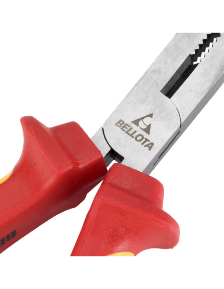 Alicate manipulación aislado con bocas semiredondas curvas con cabeza y cuerpo forjados de acero, alta durabilidad. Tratamiento diferenciado en cabeza y filo.