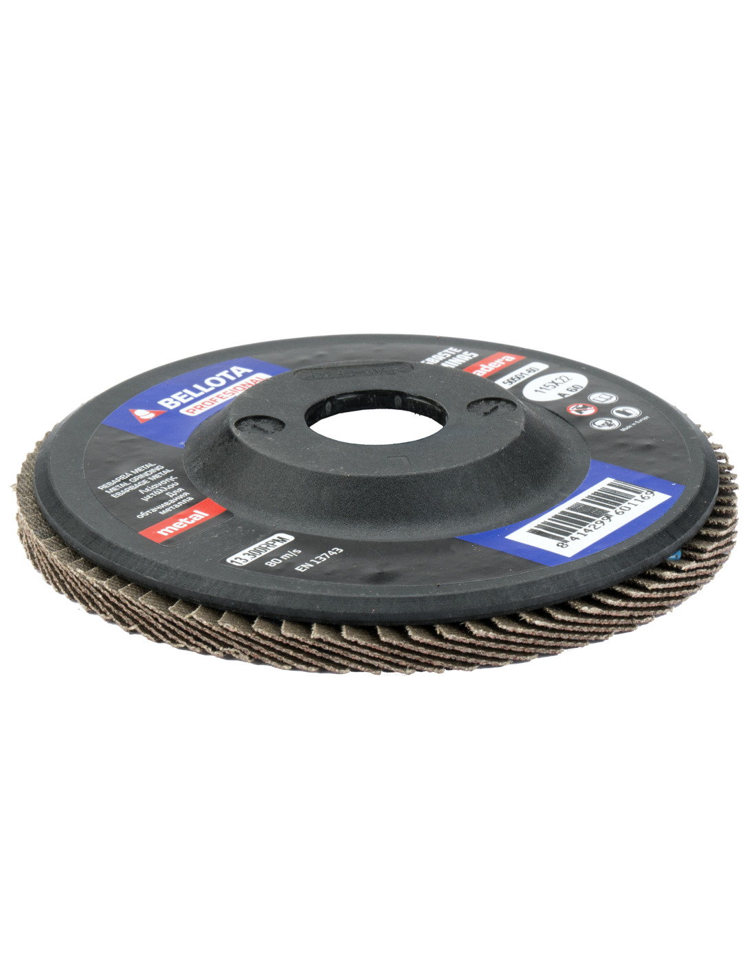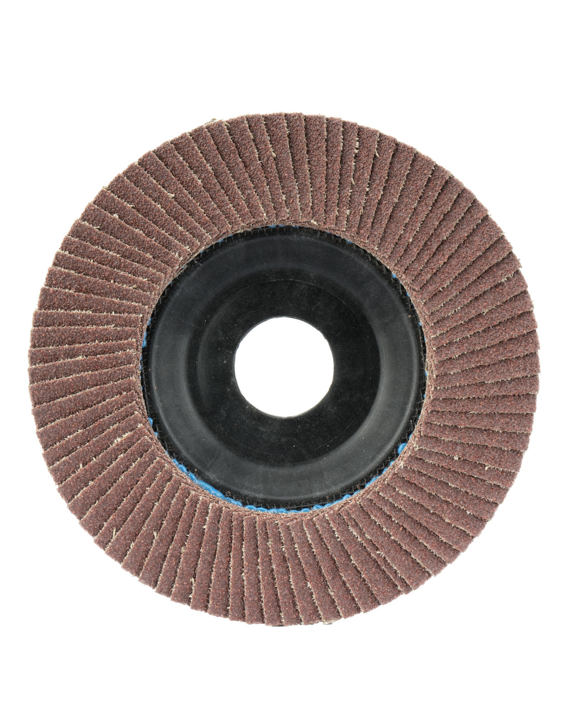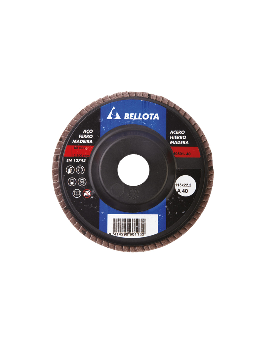Disco de láminas con base plana de poliamida para desbaste de madera-metal, grano abrasivo A (óxido de alumina - corindón). Cumplen norma UNE EN 13743 de seguridad.