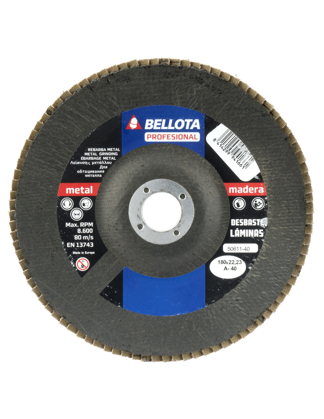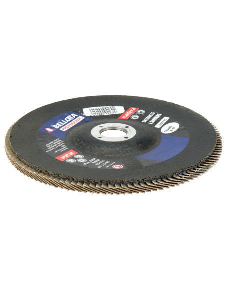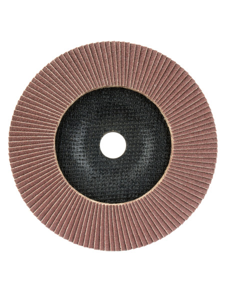 Disco de láminas con base cóncava de fibra de vidrio para desbaste de madera-metal, grano abrasivo A (óxido de alumina - corindón). Cumplen norma UNE EN 13743 de seguridad.
