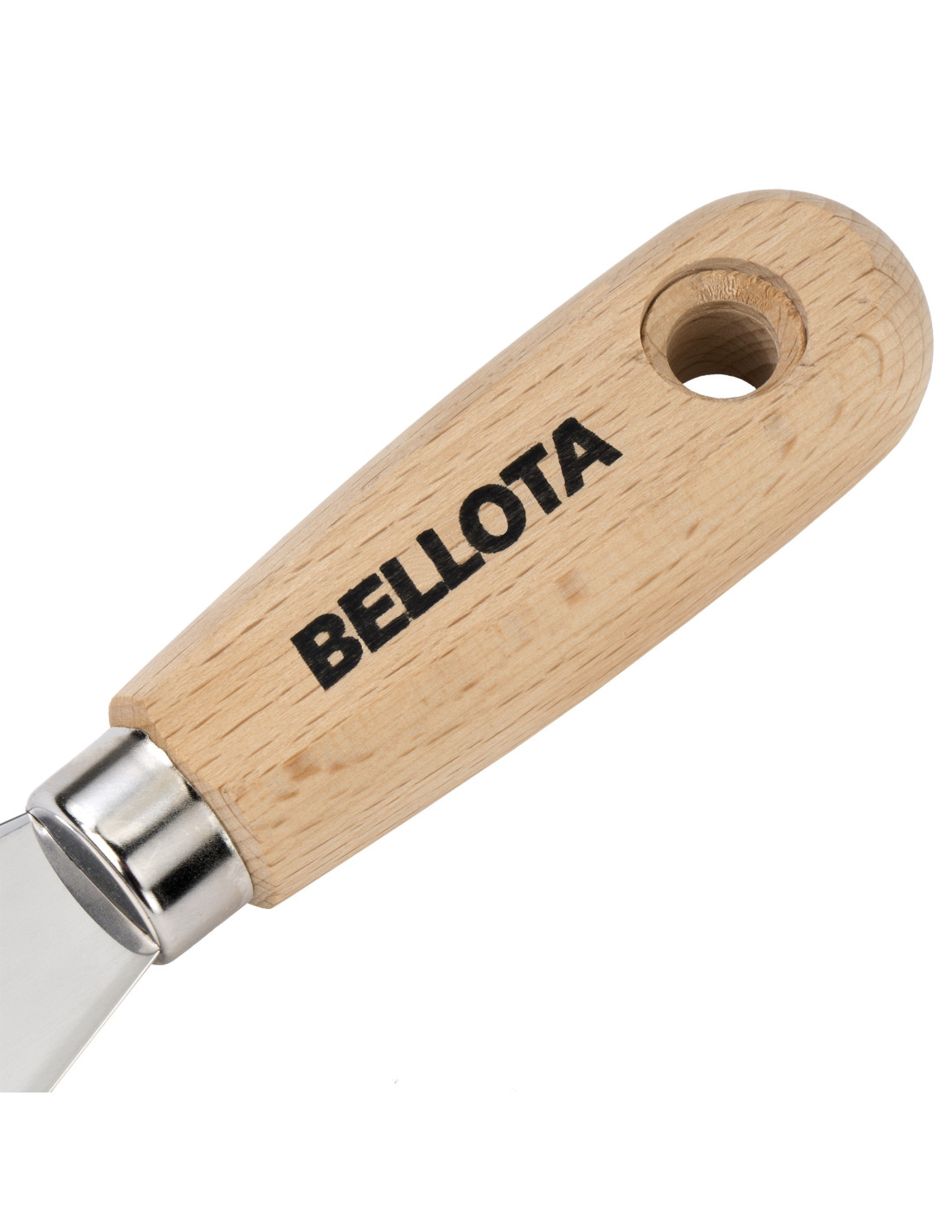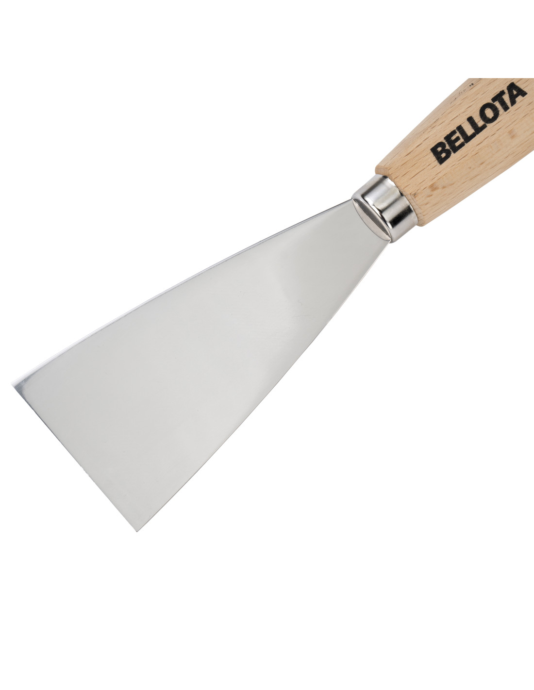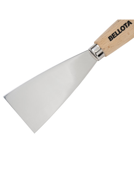 Espátula profesional de acero inoxidable, hoja rectificada, alineada y pulida, excelente flexibilidad. Mango de madera de haya.