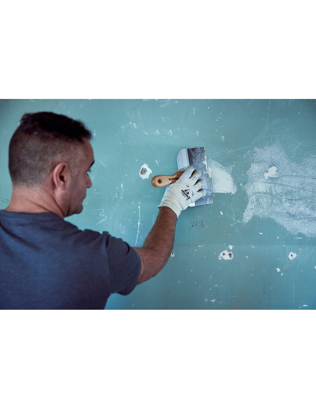 Espátula ancha americana de acero inoxidable con mango de madera para trabajos de rejunteo y remates en placa / 5895