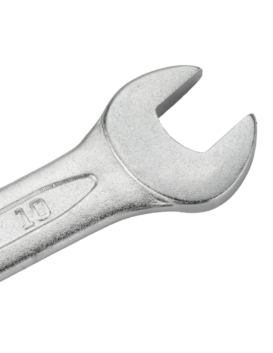 Llave fija forjada en acero cromo vanadio con acabado cromado mate. Par de apriete 50% superior a la norma. Cumplen DIN 3110 y DIN 475. Para trabajos de apriete y ajuste de tornillos.