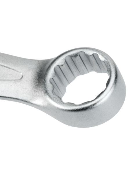 Llave combinada forjada en acero cromo vanadio con acabado cromado mate. Par de apriete 50% superior a la norma. Cumplen DIN 3113 y DIN 475. Para trabajos de apriete y ajuste de tornillos.