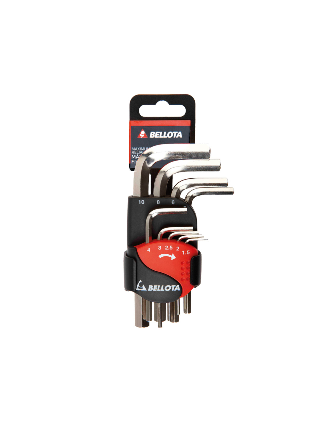 Juego clip de 9 llaves allen en acero CrV para apriete y ajuste / 64589N