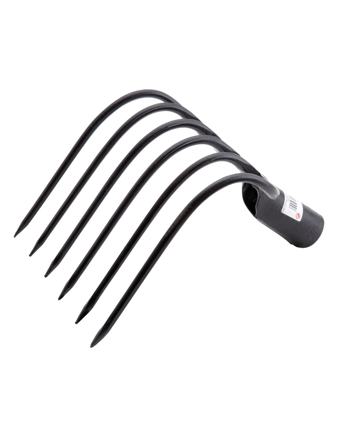 Garabato de seis púas fabricado en acero especial y forjado en una sola pieza para romper fardos. Cubo de enmangado reforzado para un unión perfecta
