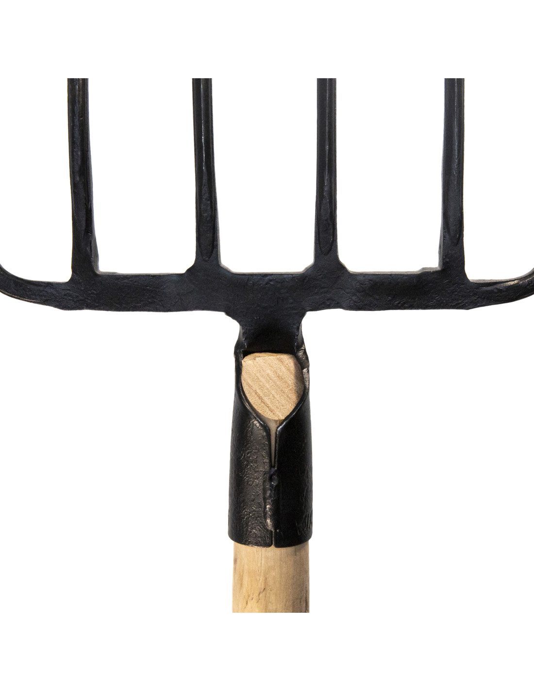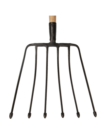 Horca forjada de 6 púas para trabajar terrenos de piedra y grava con mango largo curvo sin barnizar / 9046MCSB