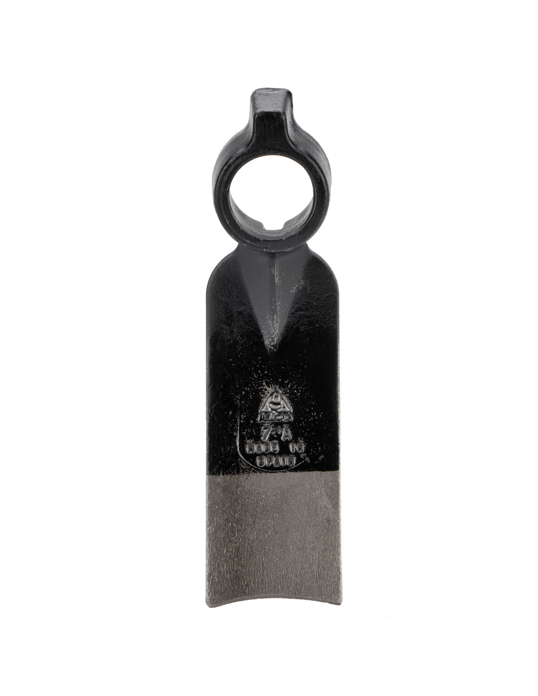 Azada forjada con sistema antigiro, estrecha con filo cóncavo y martillo en el ojo